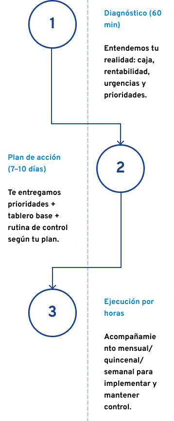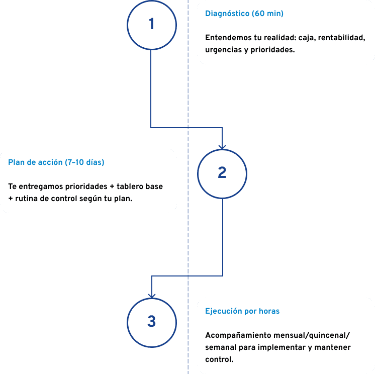DC Data & Finance Consulting acompaña a PYMEs que necesitan claridad financiera, control de caja y decisiones con datos. Integramos tesorería, indicadores y rutina de control para que la gerencia deje de operar a ciegas y pueda crecer con orden. CFO por horas: dirección financiera sin contratar un cargo full-time